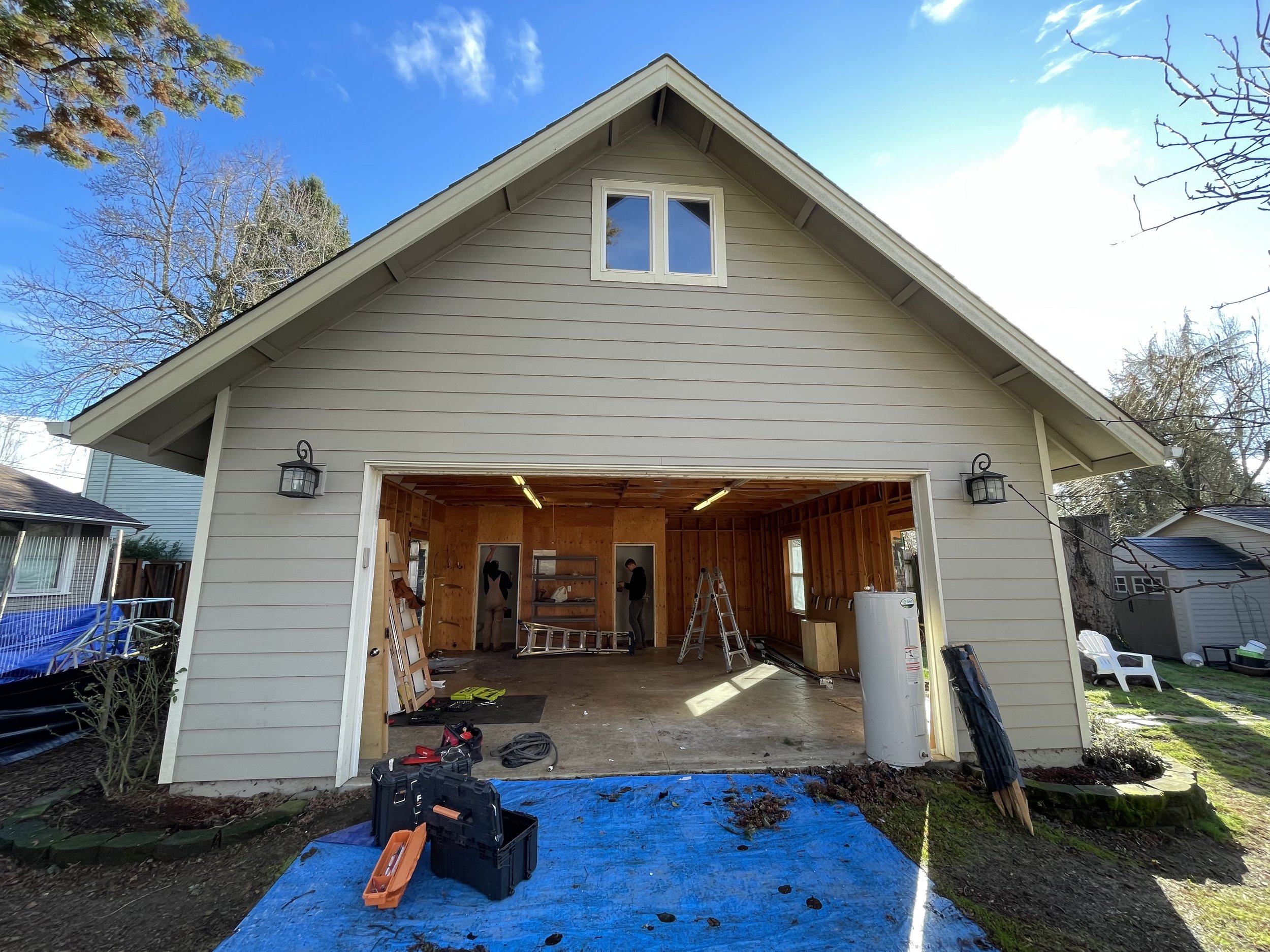 In 2023 we were contracted to convert an existing 25’x25’ garage into an ADU. We were limited to using the 600 SF ground-floor footprint. We were able to design and execute a very effective 2-bedroom, one bath dwelling with full-size bathroom, laundry and kitchen facilities.